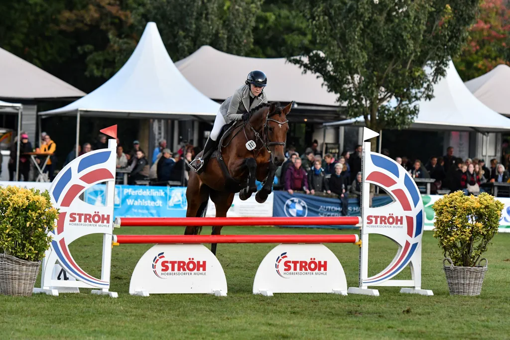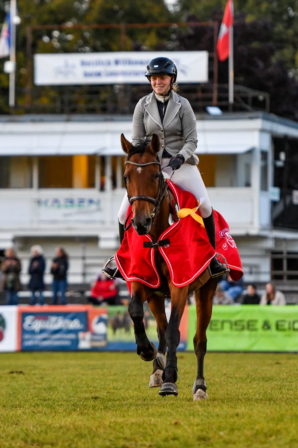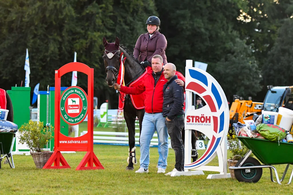 Wie bereits im Vorjahr hieß auch 2025 die Siegerin des Gesamtrankings des SALVANA Hunter Cups powered by STRÖH Judith Lüchau. Schon vor dem großen Finale führte sie die Liste mit einem großen Punktevorsprung an. Auf allen Stationen in Granderheide, Friedrichskoog, Hademarschen, Schnarup-Thumby sowie Bad Segeberg platzierte sie sich stets unter den Top-Fünf. „Für uns war es auch in diesem Jahr Ehrensache, dass wir wieder alle Stationen mitreiten und die Turnierplätze waren erneut hervorragend ausgewählt“, erzählte die ambitionierte Hunterreiterin. Nach dem zweiten Platz in der Einlaufprüfung mit ihrem Holsteiner Wallach Alvaro de Talma und der Wertnote 8,0 vor Inken Jacholke (Turniergemeinschaft nach Maas) und Kanway (7,9), belegte Judith Lüchau im Finalspringen mit der Wertnote 7,6 den fünften Platz. „Der Parcours war in diesem Jahr wirklich anspruchsvoll und würdig für ein großes Finale zum Ende der Saison. Er hat uns Reitern alles abverlangt und auch die wechselnden Lichtverhältnisse haben es einigen Mitstreitern sehr schwer gemacht“, erklärte sie die Klippen der 95er-Hunterklasse. Und eines ist für die treue Hunter Cup-Starterin nach dem Höhepunkt auf dem Landesturnier sicher: „Im nächsten Jahr sind wir ganz bestimmt wieder dabei!“